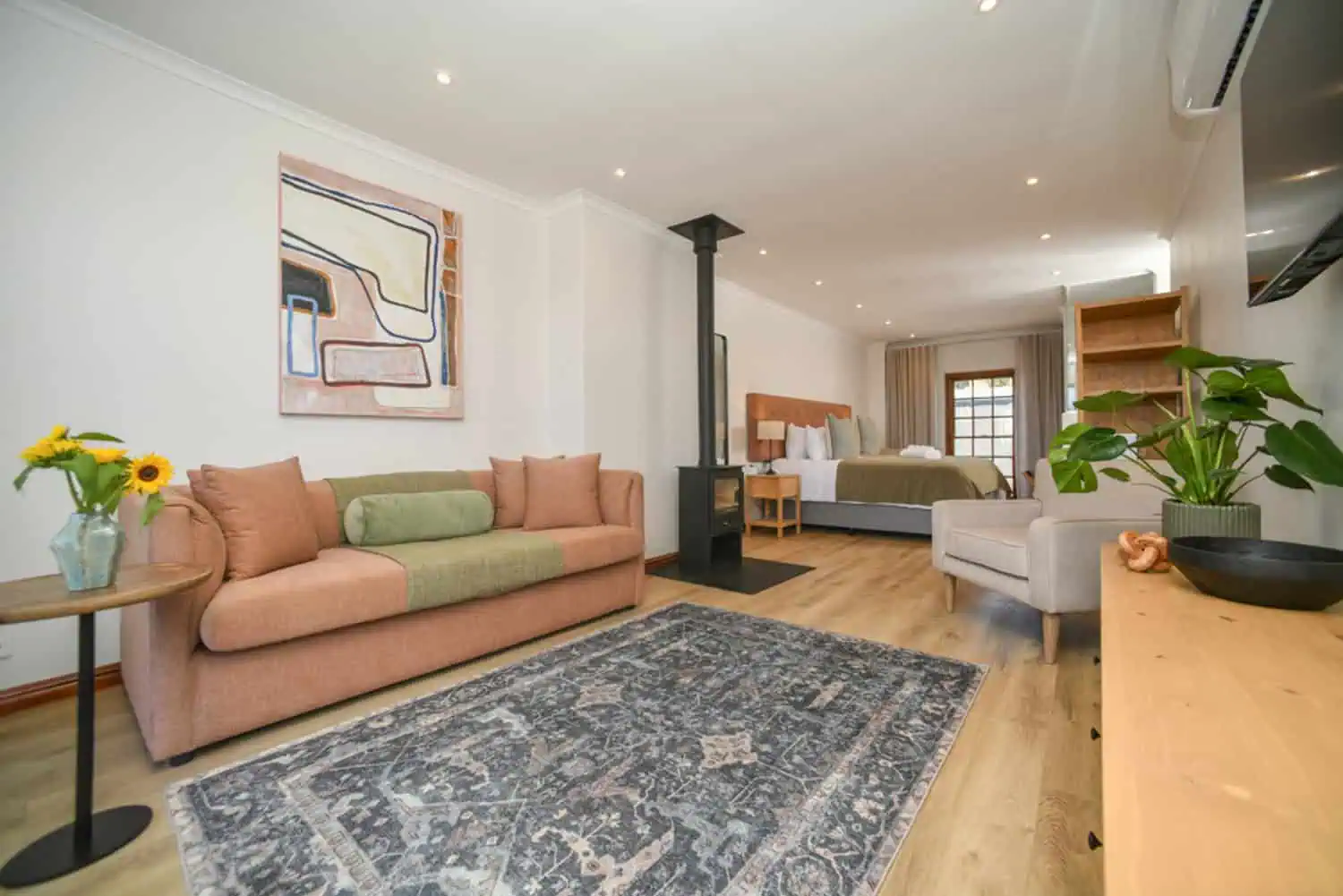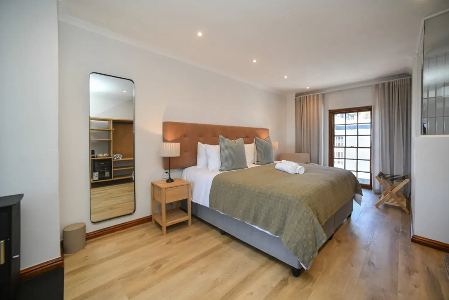 Interiors, exteriors, room types, communal spaces. The library that supports a hotel or lodge across website, OTA listings (Booking, Airbnb, etc.), social, print, and editorial. Below: room interiors and styled spaces from a recent two-room boutique guest house shoot — the kind of imagery that drives direct bookings.
